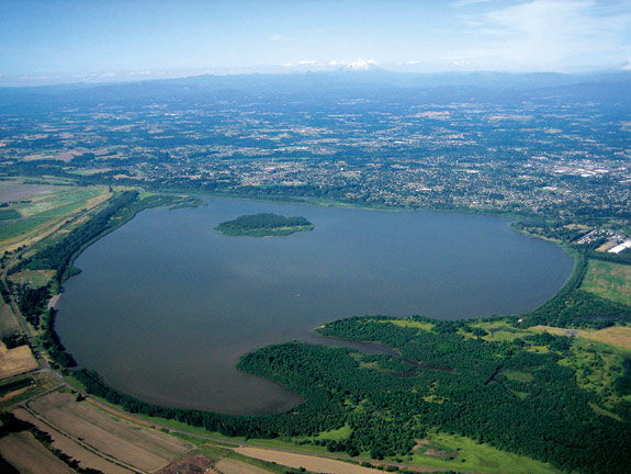 This picture of Vancouver lake demonstrates aura. This picture is taken from a slanted view, demonstrating the round shape of the lake. In the middle of the lake, one can see the round island. When shot from above, it appears to be a portrait of a massive eye, giving off a mystical feeling. Staring at the picture is like being in a fantasy world. It represents the ways in which satellite photography can be used to take two-dimensional things we normally perceive as being flat, and give them new life by revealing them in another light.