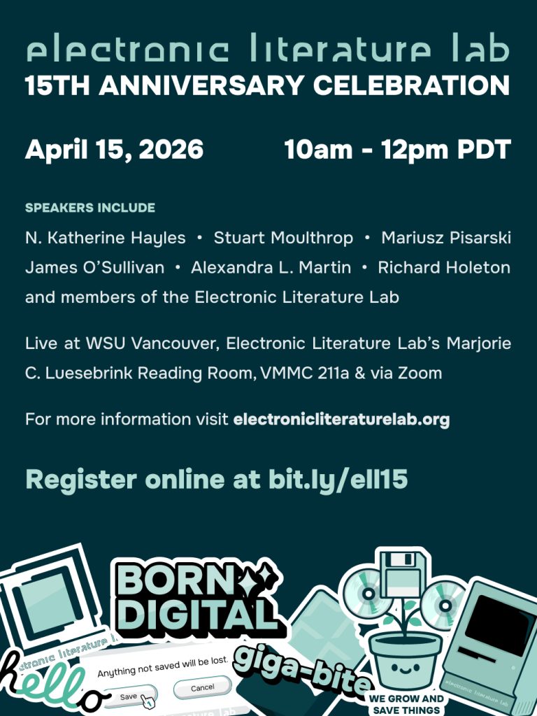 It seemed a little concept––opening a reading space called the Electronic Literature Lab (ELL) for scholars interested in experiencing born-digital literature on the hardware on which the works still function. I owned 16 legacy computers and since 1991 had been collecting floppy disks and CD-ROMs on which works were originally published. Why not share my […]