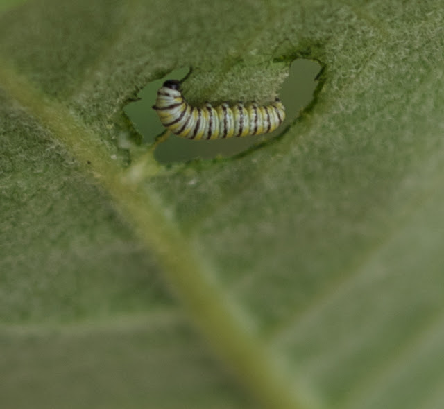 Stage 2: The eggs hatch into Larva and feed on Milk Weed.