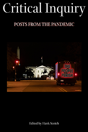 “Novel Corona: Posthuman Virus,” Critical Inquiry “Posts from the Pandemic,” April 17, 2020. Text here. Also available at https://critinq.wordpress.com/2020/04/17/novel-corona-posthuman-virus/.