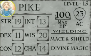 After being killed in battle, Pike felt angry. She wanted to be stronger, so that it would never happen again. She spent four months at sea, training with the men and women aboard a ship called The Broken Howl. Gripping her holy symbol in one hand, and her morningstar in the other, this time, Pike is ready."