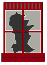 There's a sad cat looking out a window at me. No one answered the door when I knocked, so I smashed a window and set him free.