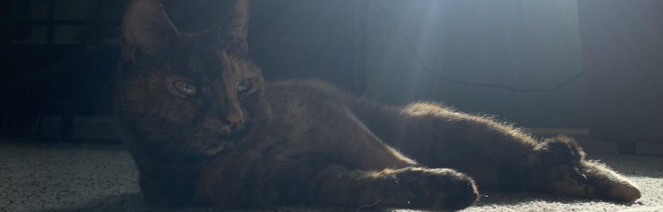 My hobbies include creative activities like digital art/design, playing piano, and baking. I have been creating art since I was young, and I hope to use my skills in a future career in some kind of media design! I also love collecting items, traveling, building 3D puzzles, and of course cats (mine is imaged above).