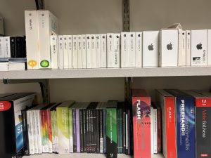 The Electronic Literature Lab has been able to expand into a new space where we can hold our computers, software, and manuals. Named the “Restoration Space,” it is located just a short step away from the MOVE, our Sound and Video Studio where we had been stowing all of this equipment for the last decade. James Lesperance, whom we hired last year to take over some of the programming and to provide support for Greg Philbrook, is now also our designated “Tech Librarian.”