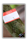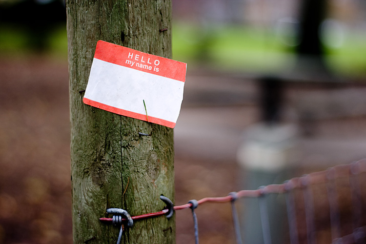 was especially reflective of the vacant mood: stuck to a post, a name badge sticker without a name written on it.