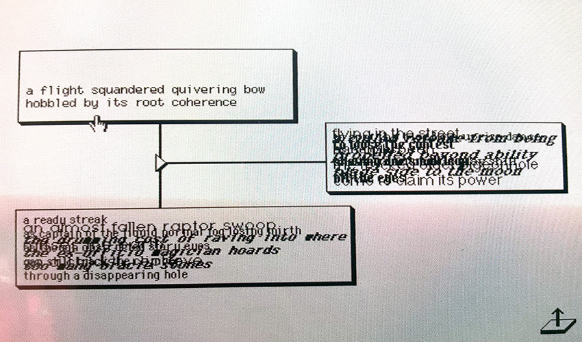 Filed under "Eastgate Quarterly Review of Hypertext Volume 1, Number 1". Requires HyperCard 2.x or HyperCard Player. Contains manual, floppy disk, and registration card. Vinyl folio has a property of Katherine Hayles label on front. Manual pages stick together.