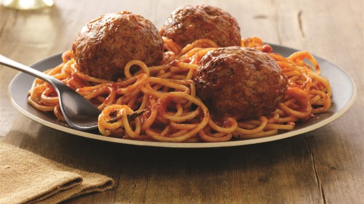Step 4: Bake for 20 minutes or until meatballs are cooked through (160 degrees F). Serve with your favorite sauce and spaghetti